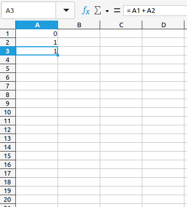 - \(F_0=0\), \(F_1=1\), et \(F_{n+2} = F_{n+1} + F_n\) pour tout \(n\in\mathbb N\) ; les termes sont définis de manière récursive.