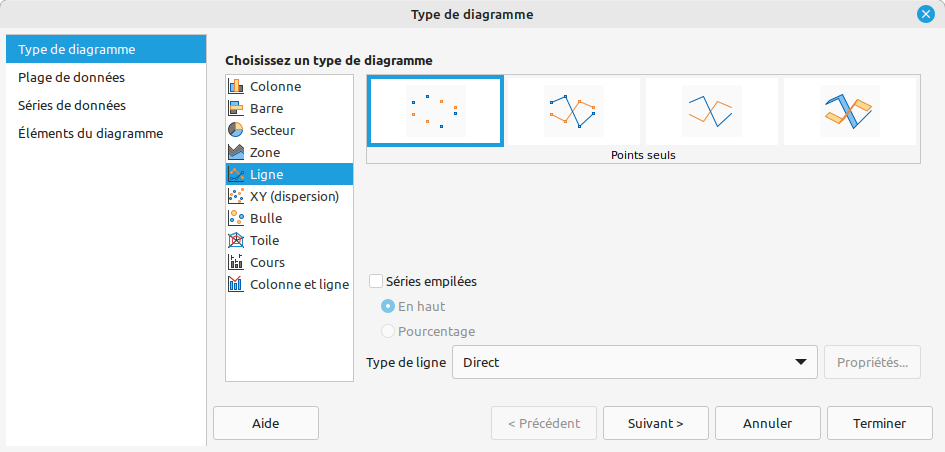 Ensuite, on clique sur Ligne, on garde Points seuls, et Suivant >.