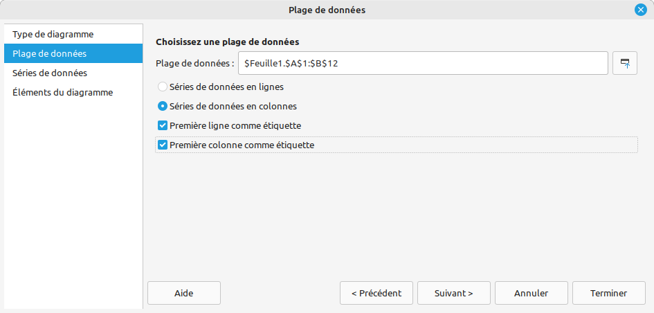 - On coche : Première colonne comme étiquette ; pour avoir la seconde colonne en fonction de la première.