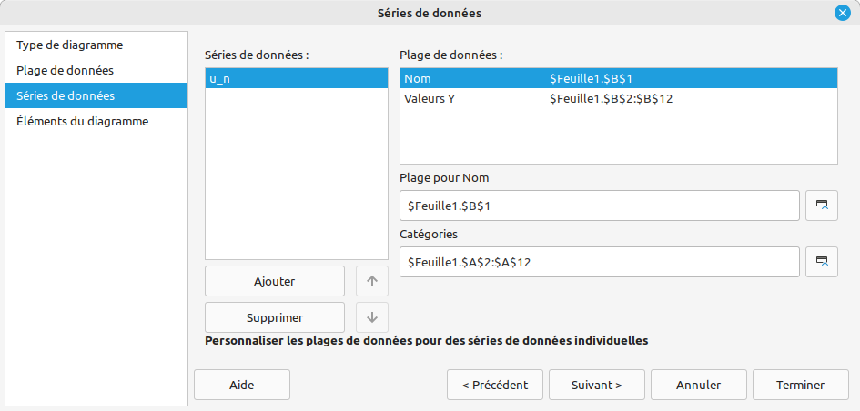 - On conserve : Séries de données en colonnes