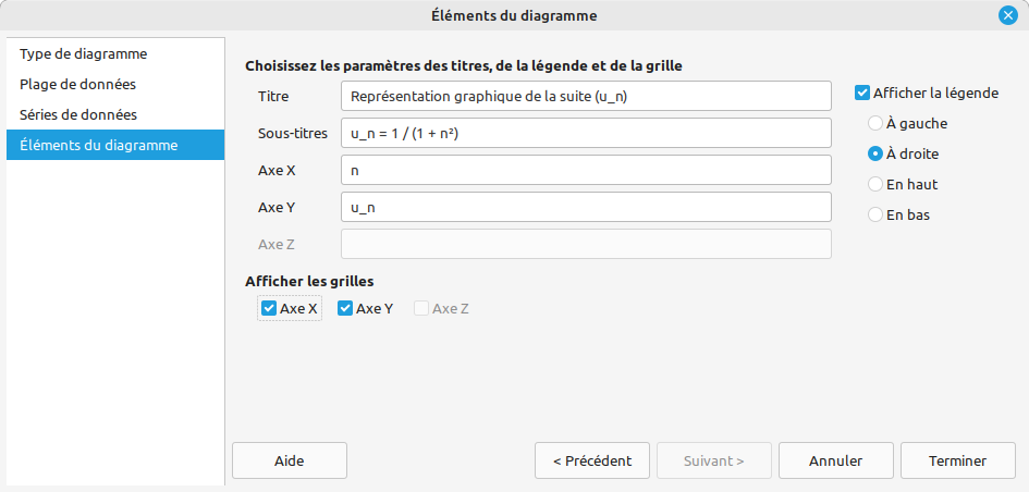 - On complète les titres et la légende.